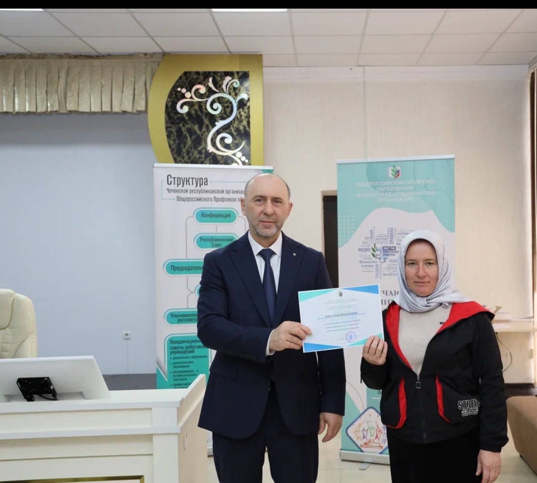 Вручение сертификата председателю ППО