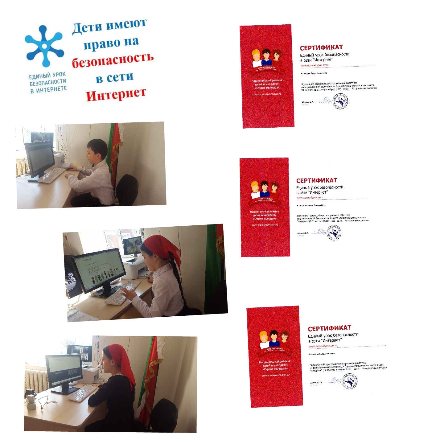 Цель: повышение уровня знаний школьников в сфере информационной безопасности и цифровой грамотности. После прохождения онлайн урока учащиеся получили сертификаты об участии Едином уроке по безопасности в сети «Интернет».