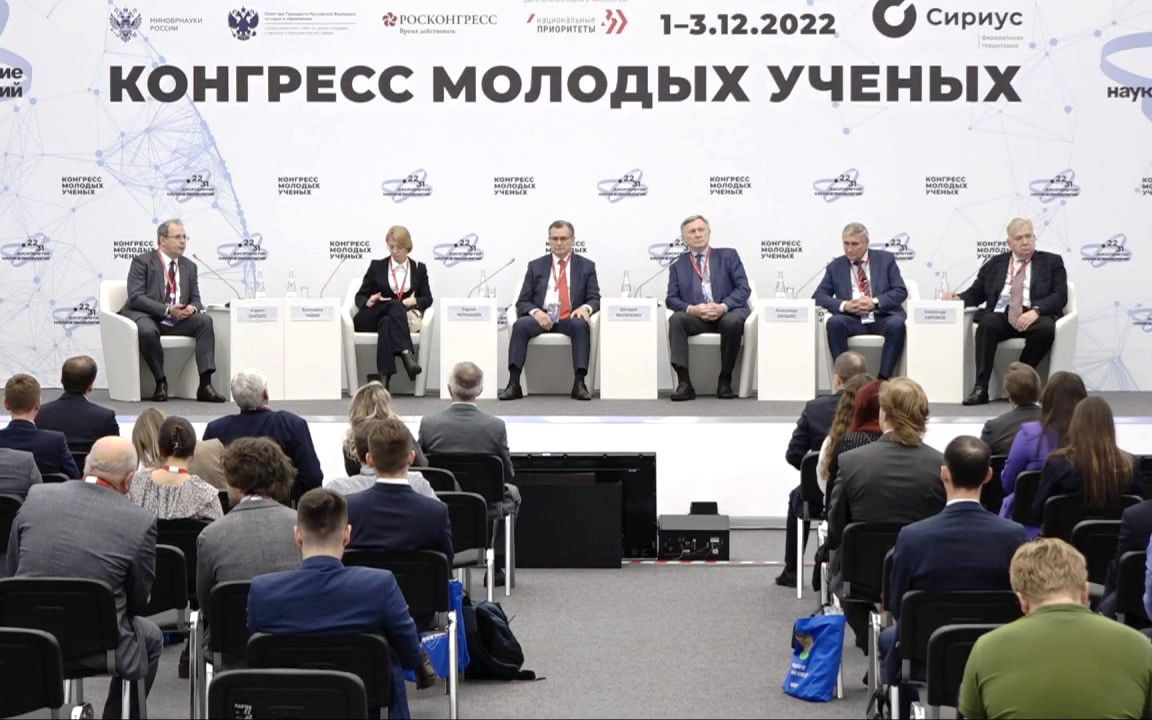 Модерировал сессию директор центра академического развития студентов, старший преподаватель департамента социологии, НИУ ВШЭ Андрей Кожанов. Спикерами выступили со-основатель, программный директор Фестиваля актуального научного кино «ФАНК», член экспертного совета по неигровому кино Министерства культуры РФ, член правления Европейской академии научного кино Ирина Белых, генеральный директор телеканала «Наука» Григорий Ковбасюк, старший вице-президент по развитию Сколковского института науки и технологий (Сколтех) Александр Сафонов, главный редактор телеканала «365 дней ТВ», продюсер документальных фильмов Герман Трегубенко, директор Центра исследований культурной среды философского факультета им. М.В. Ломоносова, руководитель исследований Института кино факультета креативных индустрий НИУ ВШЭ Олег Иванов. В режиме онлайн к обсуждению присоединились режиссер, продюсер, член Правления Союза кинематографистов Павел Печенкин и генеральный продюсер ГК «Рики» Юлия Николаева. «Наш проект «Лаборатория научного кино» предоставляет молодым ученым «Сколтеха» - научному коллективу с мировым именем - возможность рассказать о своем любимом деле. Сотрудничество молодых ученых и режиссеров в рамках фестиваля актуального научного кино «ФАНК» воплотилось в создание большого кино. И это не только популяризация науки и повышение уровня осведомленности общества. Мы видим в этом совместном творчестве и уникальный ресурс для творческой самореализации художника, и вдохновение для ученого в его работе», - отметил старший вице-президент по развитию Сколковского института науки и технологий Александр Сафонов. В своих выступлениях спикеры оценили, насколько полно сейчас представлены наука, образ ученого и научные факты в жанре кино, какие новые форматы необходимо развивать, как сделать научное кино доступным и массовым, как продвигать эстетику науки, учёного как главного героя и повседневную практику научных исследований в кинематографии завтрашнего дня. Партнёр трансляций — социальная сеть ВКонтакте. Организаторами Конгресса молодых ученых в 2022 году выступают Министерство науки и высшего образования Российской Федерации, Координационный совет по делам молодежи в научной и образовательной сферах Совета при Президенте Российской Федерации по науке и образованию и Фонд Росконгресс. Оператором Десятилетия науки и технологий выступает АНО «Национальные приоритеты». Конгресс будет проходить при поддержке титульного партнера – Федерального проекта «Платформа университетского технологического предпринимательства», титульного партнера – Государственной корпорации по атомной энергии «Росатом», стратегического партнера – ПАО «Россети», официального партнера – Государственной корпорации развития «ВЭБ.РФ», официального партнера – ПАО Сбербанк.
