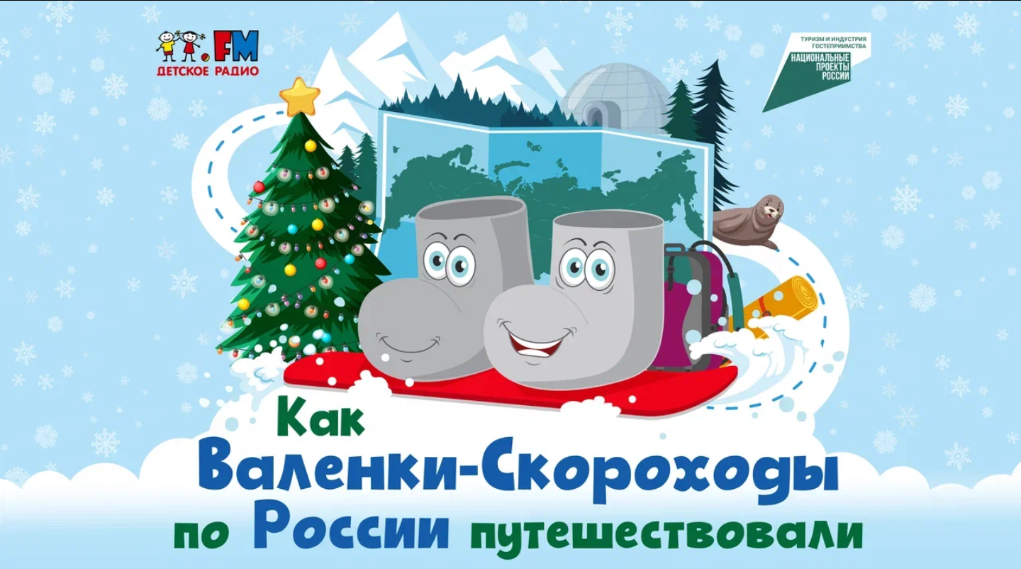 15.12.2022Для самых маленьких слушателей АНО «Национальные приоритеты» и Детское радио создали сказочный сериал о путешествиях по интересным и загадочным местам в России. Цикл детских аудиосказок получил название «Как Валенки-Скороходы по России путешествовали». Услышать выпуски сказок можно в эфире Детского радио с 7 декабря. Детские сказки разработаны при информационной поддержке национального проекта «Туризм и индустрия гостеприимства». Сказки созданы в формате аудиоспектаклей, которые погрузят ребенка в волшебный и сказочный мир регионов России. Первый выпуск вышел в радиоэфир 7 декабря в 11:30 (МСК), далее новые эпизоды сказок будут выходить каждый будний день в 11:30 (МСК) - премьерный выпуск, а в 17:45 (МСК) - повтор. Всего будет 15 выпусков, финальный эпизод выйдет 27 декабря и расскажет о волшебном приключении в Великом Устюге - самом новогоднем месте для детей. Каждая сказка повествует детям о необычных местах в регионах России. Среди них – Карелия, Мурманск, Архангельск, Байкал, Алтай, Якутия, Бурятия, Камчатка, Сахалин, Горная Шория в Кузбассе и другие. Главными героями сказок являются Дед Мороз и Валенки-Скороходы. По сюжету в канун Нового года Дед Мороз решает пополнить коллекцию подарков самыми необычными сувенирами из разных уголков России. Он просит волшебные Валенки-Скороходы отправиться в большое путешествие по России и привезти самые интересные подарки. Так по его заданию Валенки-Скороходы отправляются в большое и долгое приключение по 15 регионам России, в каждом из которых они встретят волшебного местного жителя. Например, в Карелии Валенкам-Скороходам поможет подобрать подарок карельская береза, а на Байкале – нерпа, в Якутии они встретят северного оленя, а в поселке Териберка Мурманской области – кита, на Алтае героям поможет благородный олень или алтайский марал. Волшебные персонажи в каждом регионе покажут Валенкам достопримечательности своего края, расскажут об истории, традиционных зимних забавах и подарят на память местные сувениры, которые и пополнят коллекцию подарков Деда Мороза.