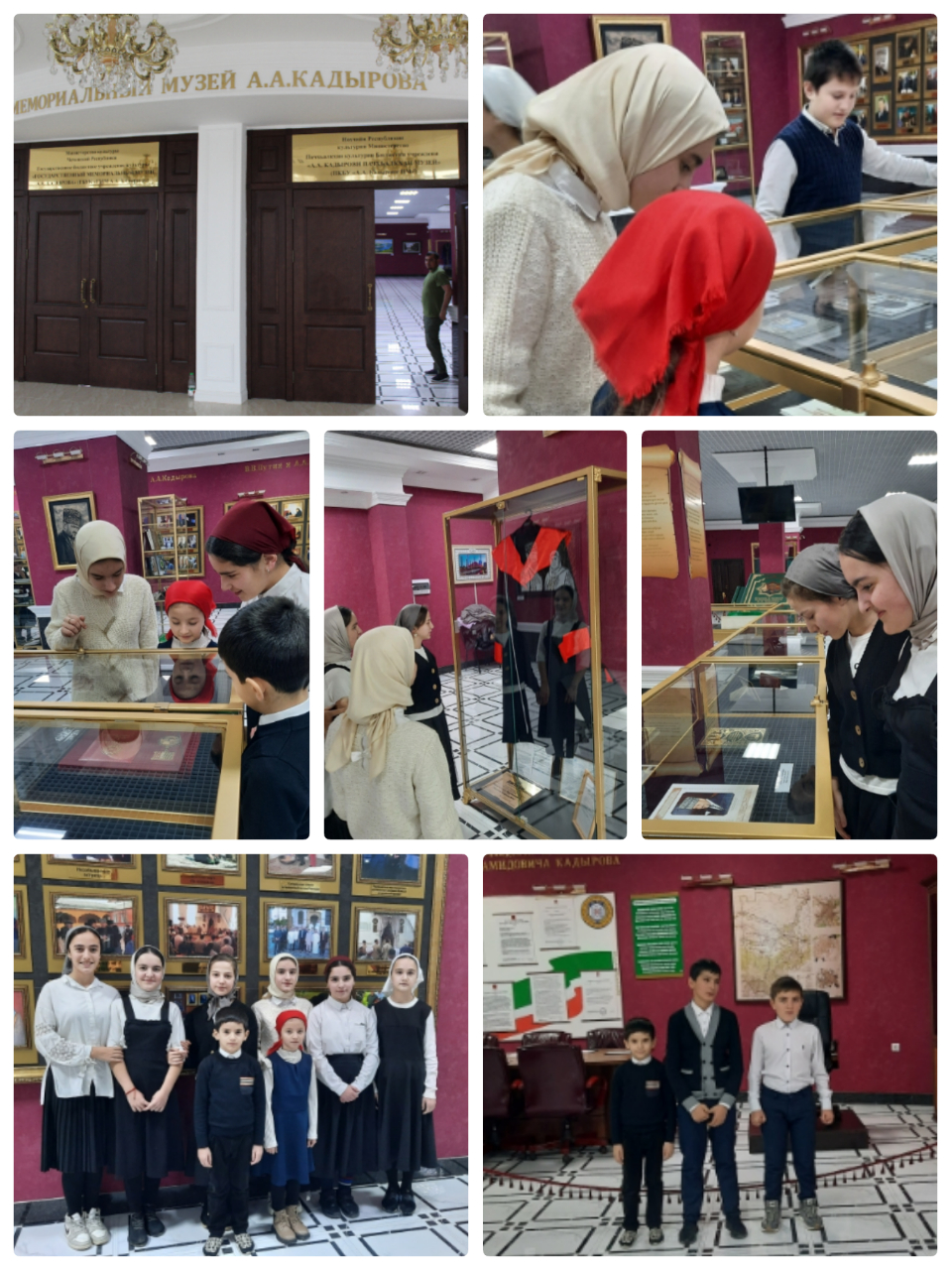 В начале экскурсии учащиеся внимательно осматривали зал и витрины , где хранятся личные вещи Ахмата-Хаджи Кадырова. Особенно понравился детям зал, где был выставлен личный кабинет Первого Президента ЧР.