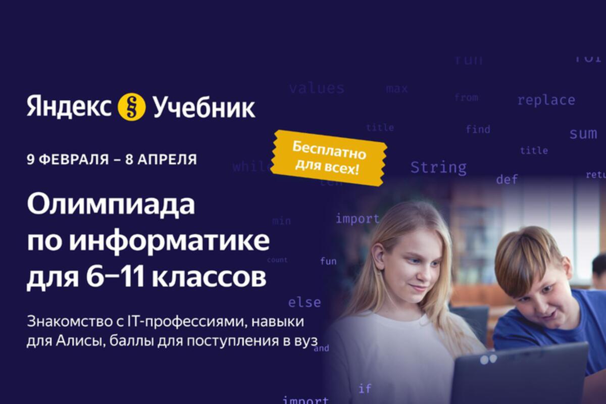 Ученики 6–11-х классов с любым уровнем подготовки поучаствовать в олимпиаде по информатике https://education.yandex.ru/olymp/inf2023, которая проводится в поддержку федерального проекта «Кадры для цифровой экономики» национального проекта «Цифровая экономика» платформой Яндекс Учебник. Она состоит из двух туров и пройдёт онлайн с 9 февраля по 8 апреля. Присоединиться к олимпиаде можно до завершения первого тура — до 6 марта. Участники второго тура получат возможность заработать дополнительные баллы для поступления в топовые российские вузы.